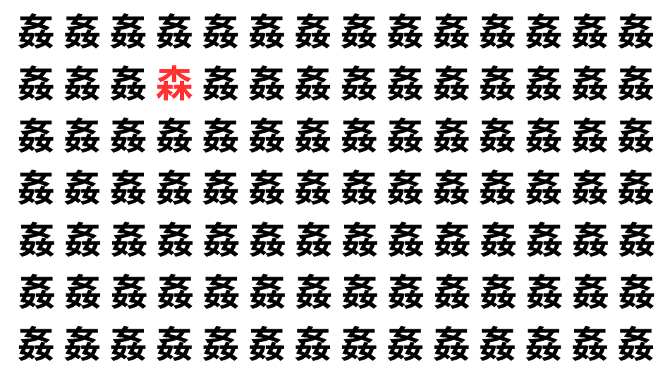 たくさんの「姦」の中に、よく似た別の漢字が1文字だけ隠れています。