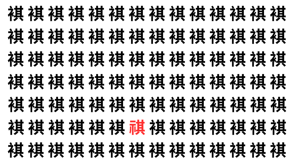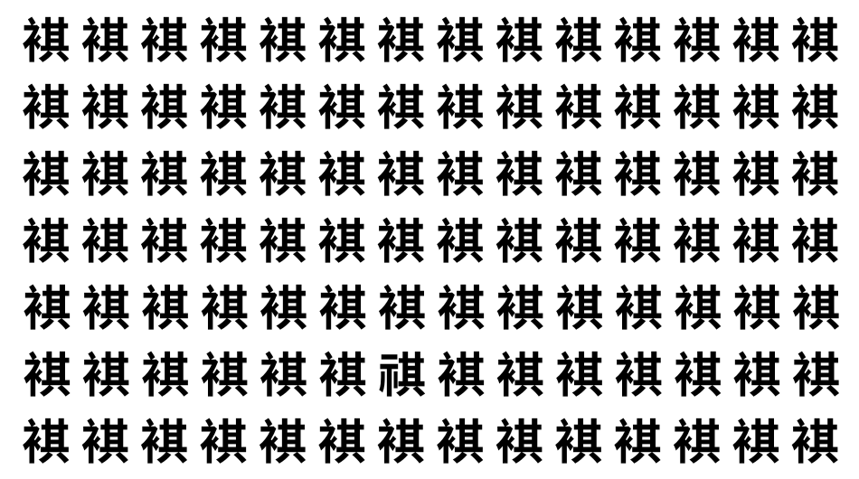 たくさんの「褀」の中に、よく似た別の漢字が1文字だけ隠れています。
