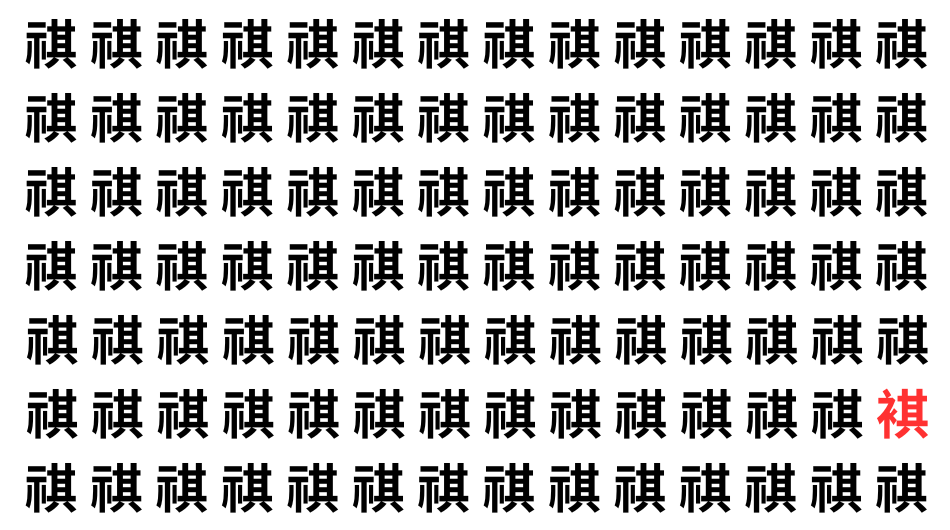 たくさんの「祺」の中に、よく似た別の漢字が1文字だけ隠れています。
