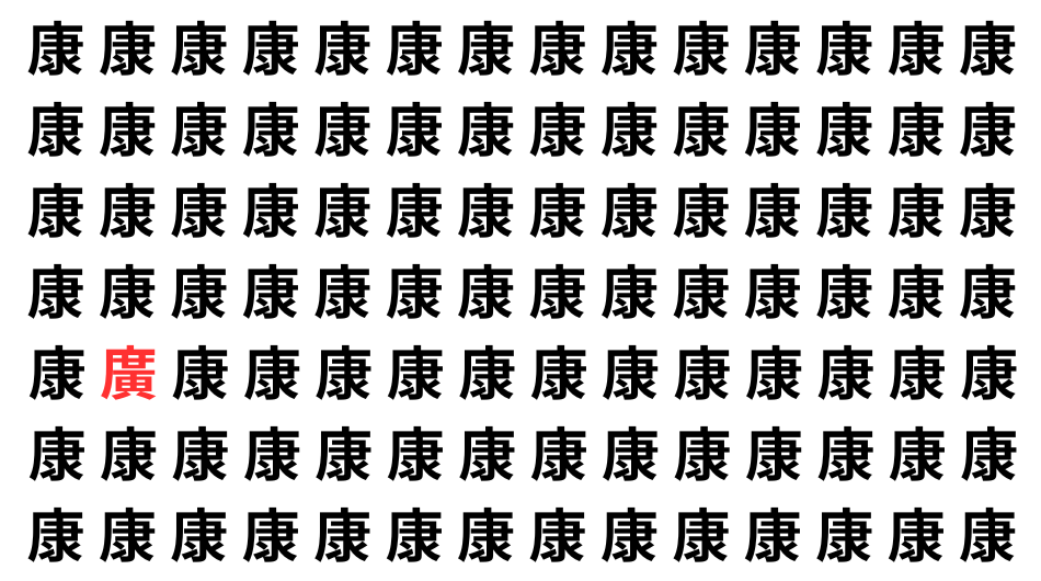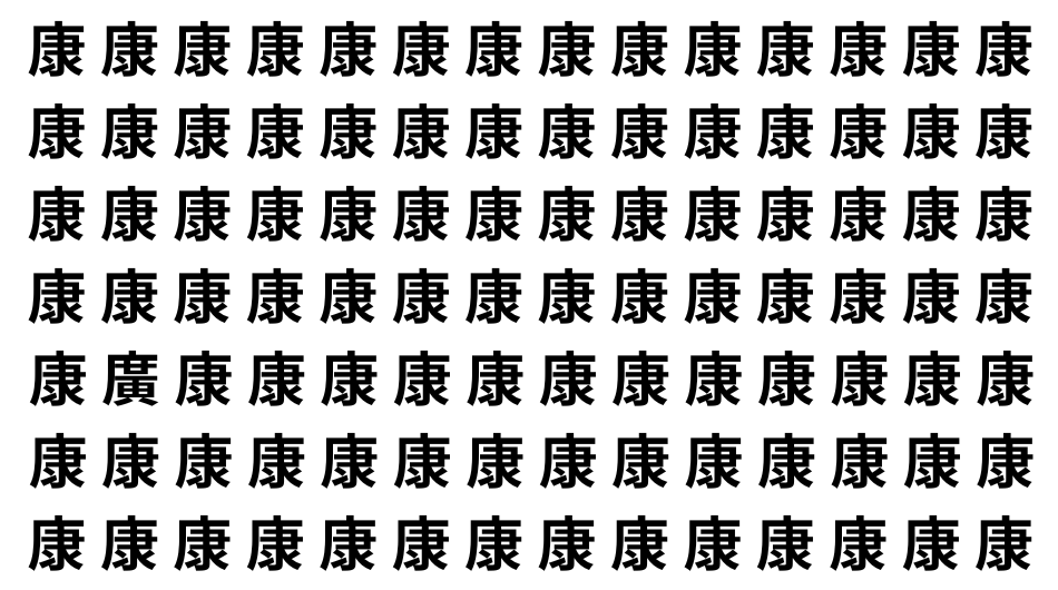 たくさんの「康」の中に、よく似た別の漢字が1文字だけ隠れています。