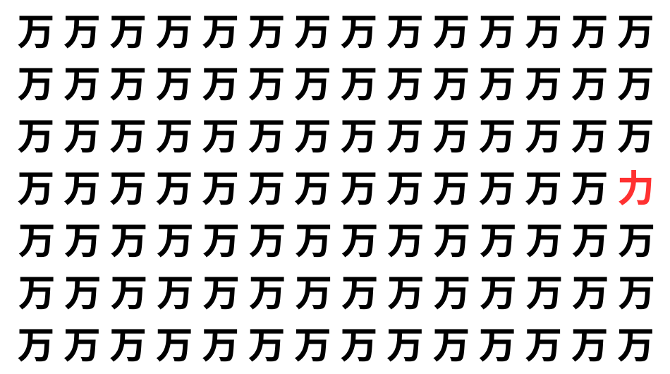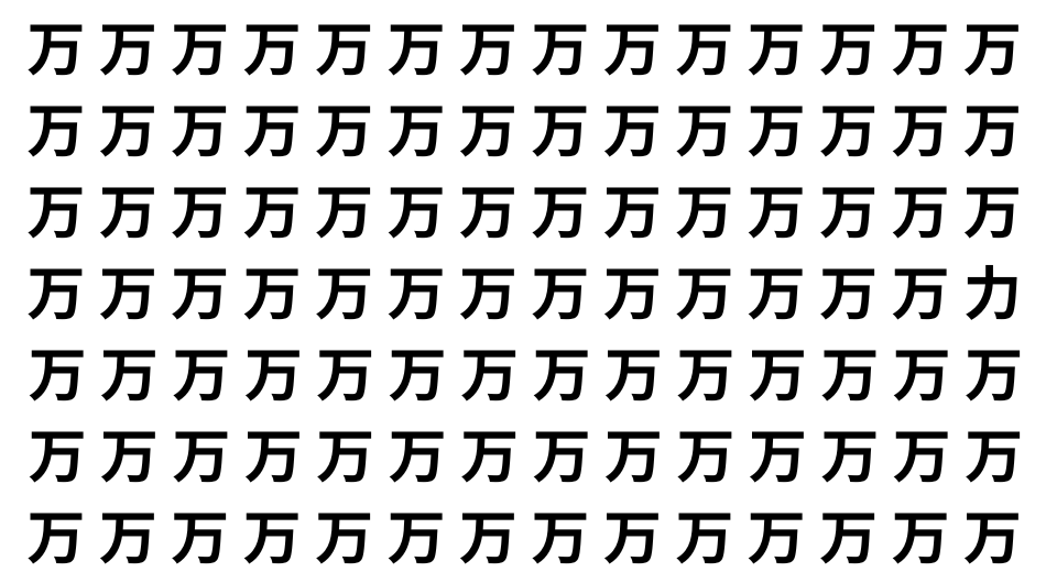 たくさんの「万」の中に、よく似た別の漢字が1文字だけ隠れています。