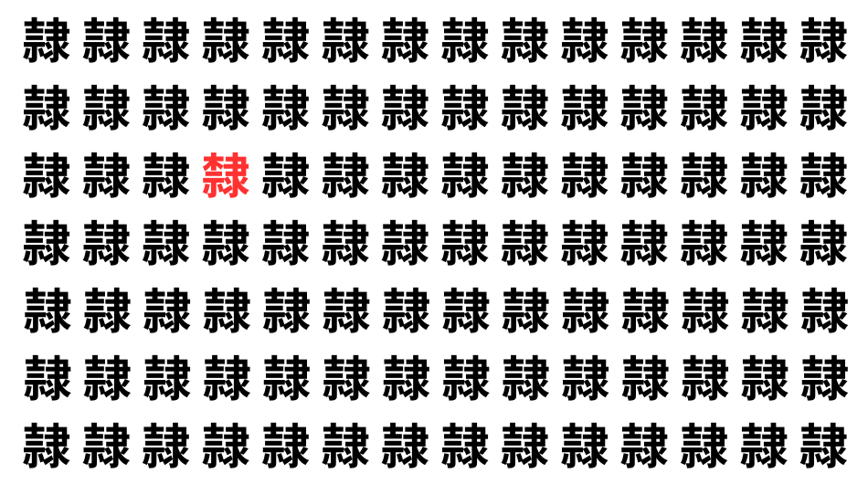 たくさんの「隷」の中に、よく似た別の漢字が1文字だけ隠れています。