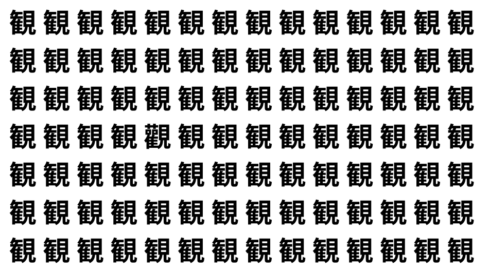 たくさんの「観」の中に、よく似た別の漢字が1文字だけ隠れています。