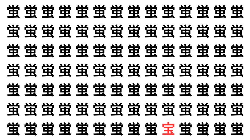 たくさんの「蛍」の中に、よく似た別の漢字が1文字だけ隠れています。