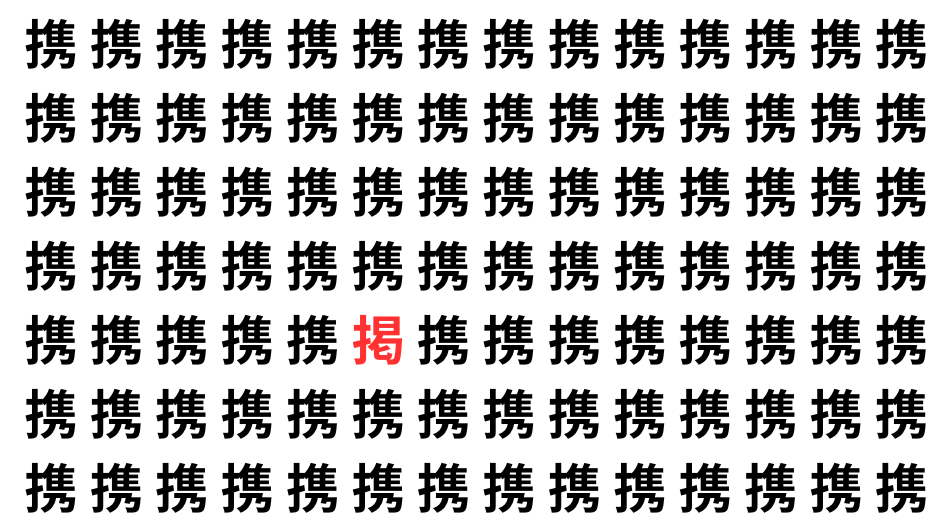 たくさんの「携」の中に、よく似た別の漢字が1文字だけ隠れています。
