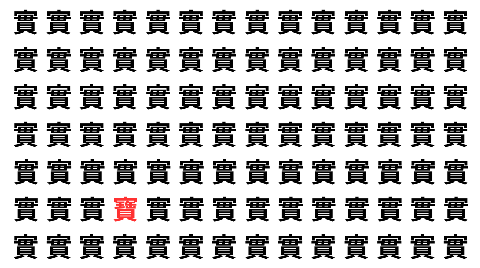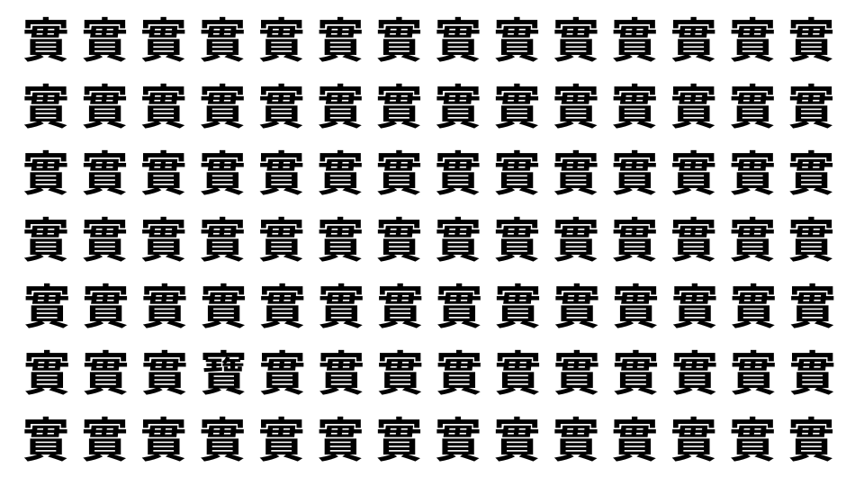 たくさんの「實」の中に、よく似た別の漢字が1文字だけ隠れています。