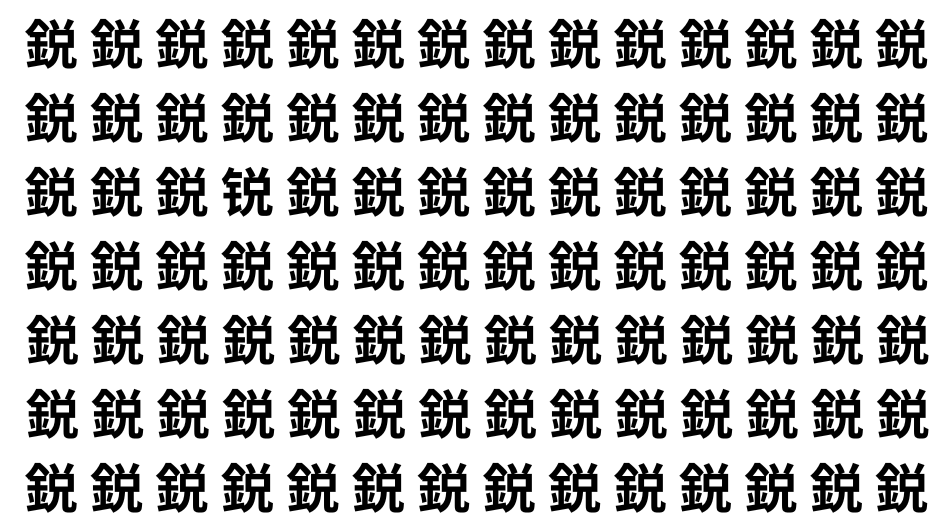 たくさんの「鋭」の中に、よく似た別の漢字が1文字だけ隠れています。