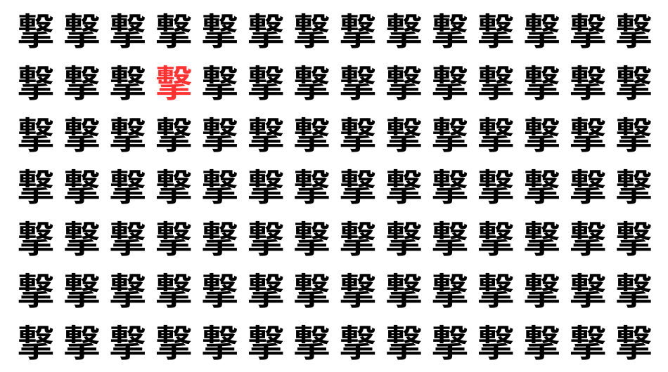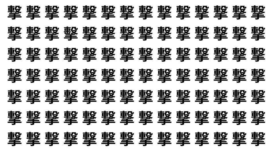 たくさんの「撃」の中に、よく似た別の漢字が1文字だけ隠れています。
