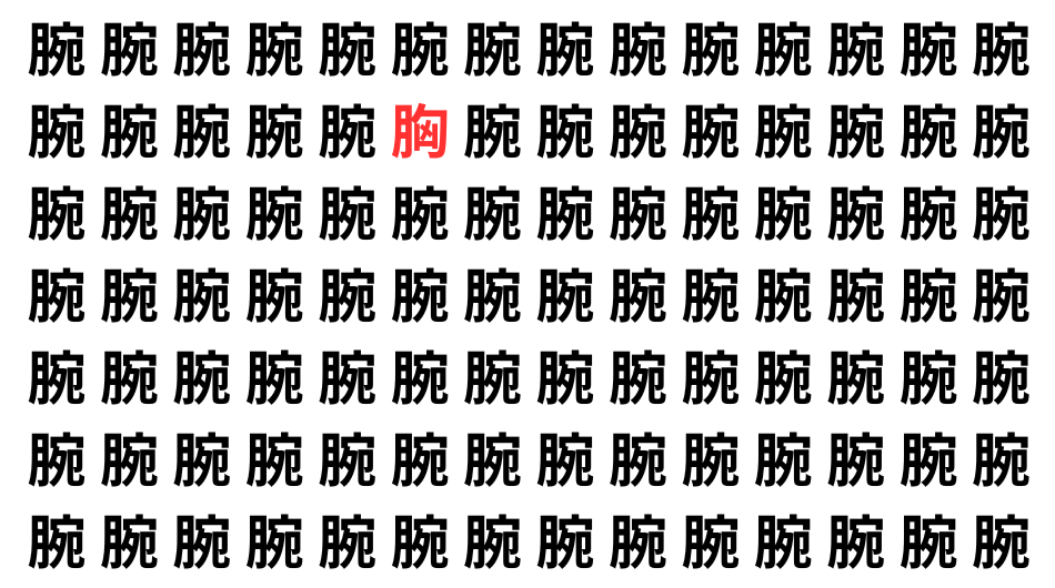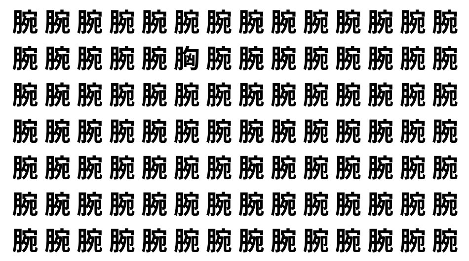 たくさんの「腕」の中に、よく似た別の漢字が1文字だけ隠れています。