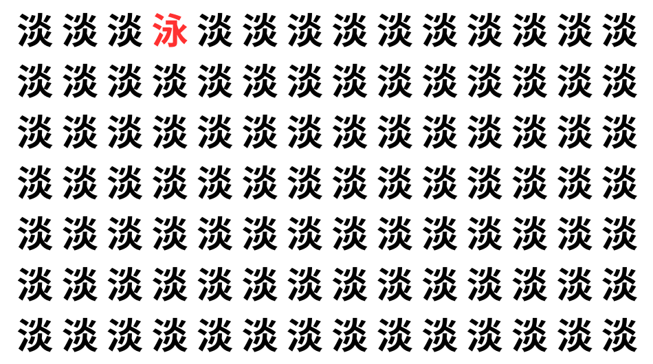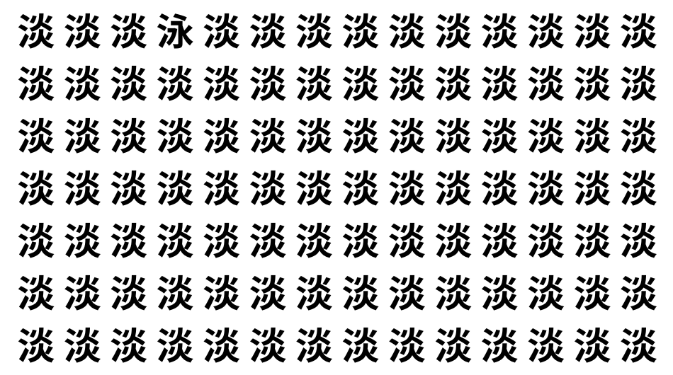 たくさんの「淡」の中に、よく似た別の漢字が1文字だけ隠れています。