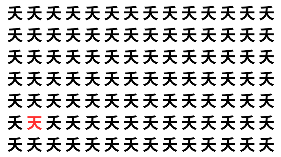 たくさんの「夭」の中に、よく似た別の漢字が1文字だけ隠れています。