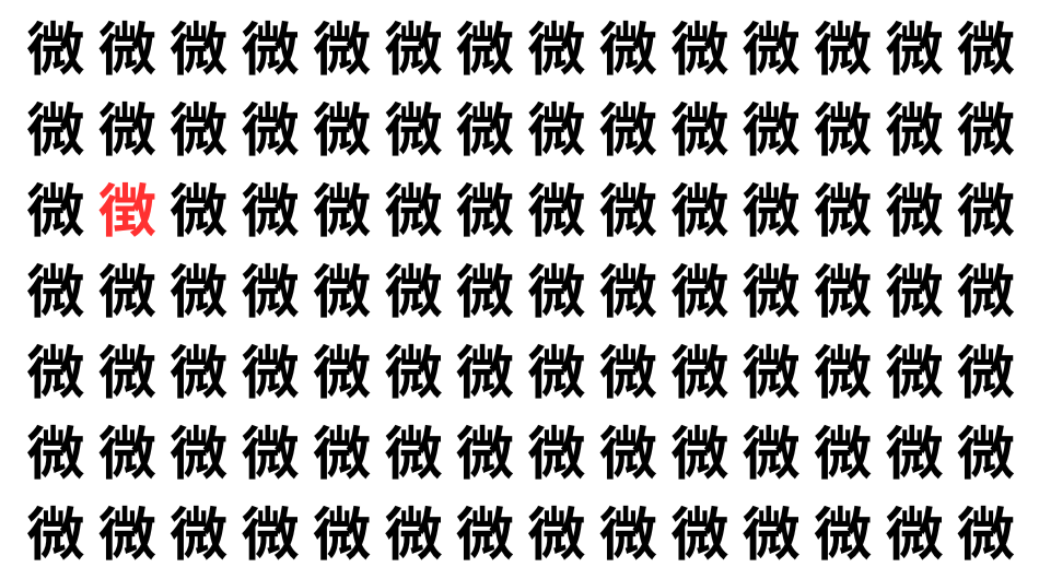 たくさんの「微」の中に、よく似た別の漢字が1文字だけ隠れています。