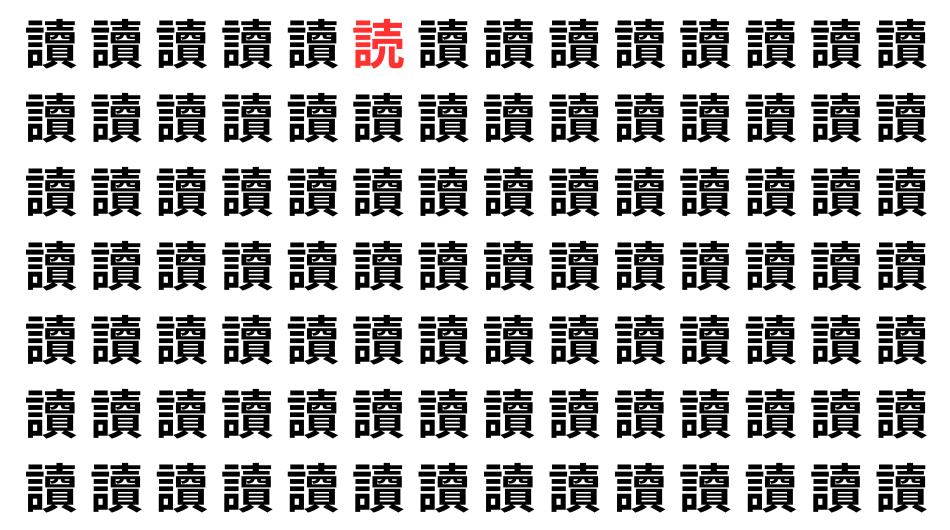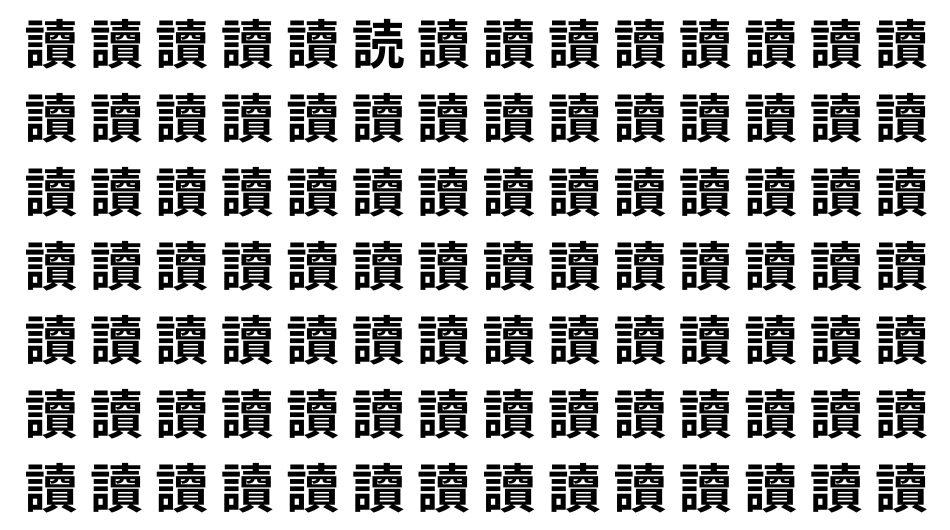 たくさんの「讀」の中に、よく似た別の漢字が1文字だけ隠れています。