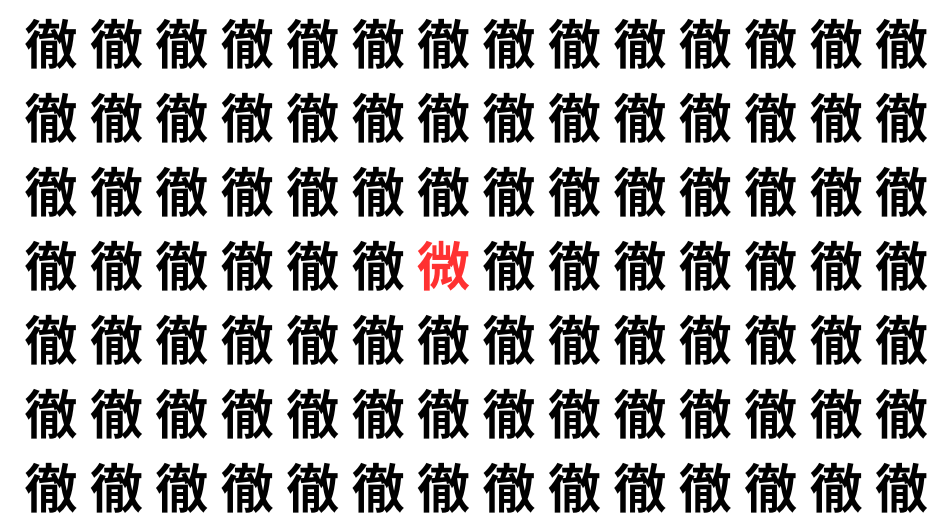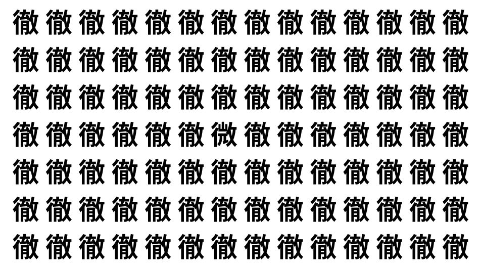 たくさんの「徹」の中に、よく似た別の漢字が1文字だけ隠れています。