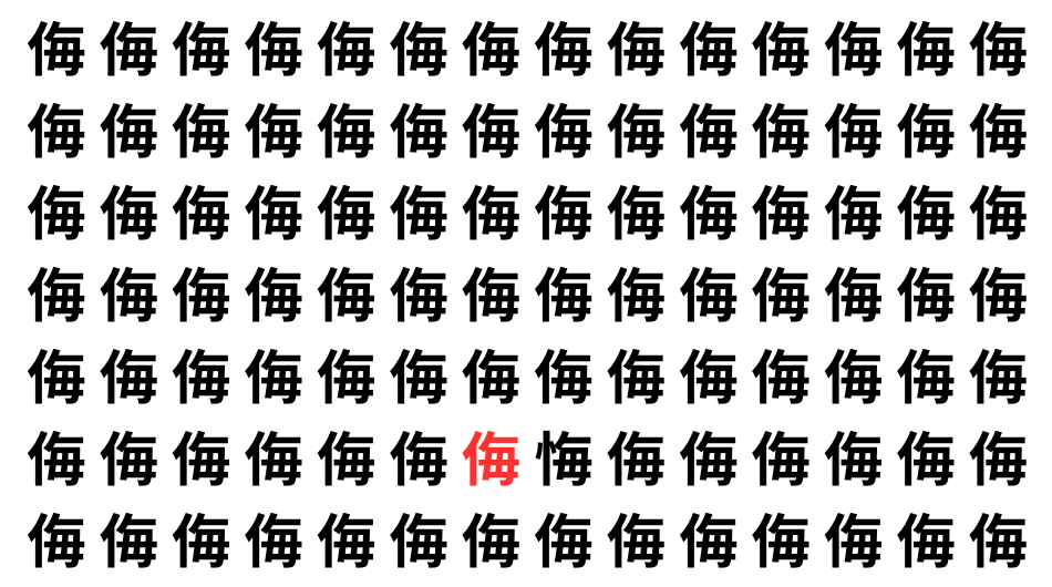並んだ漢字の中に、ひとつだけ異なる文字が紛れています。集中して探し出し、気分をリフレッシュしましょう!