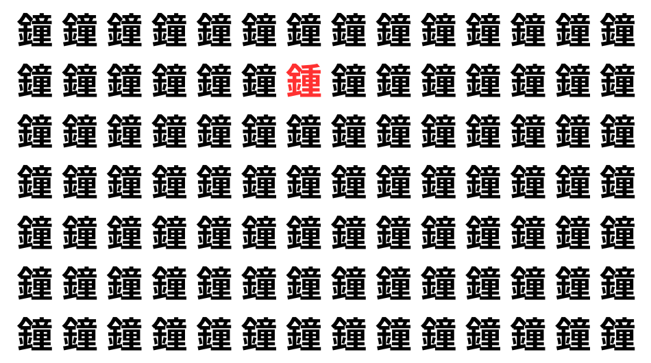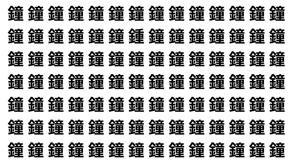 たくさんの「鐘」の中に、よく似た別の漢字が1文字だけ隠れています。