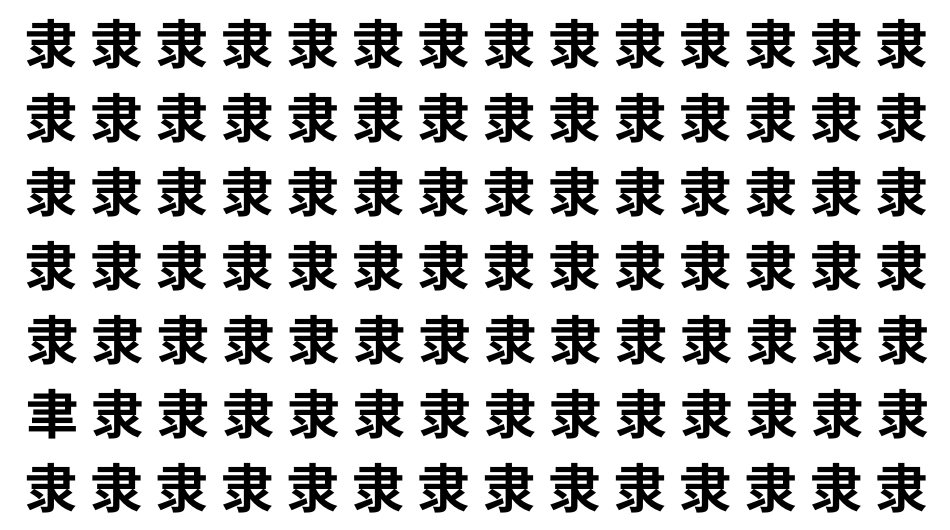 たくさんの「隶」の中に、よく似た別の漢字が1文字だけ隠れています。