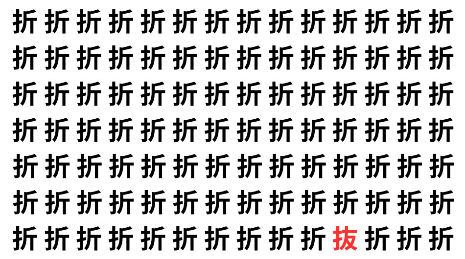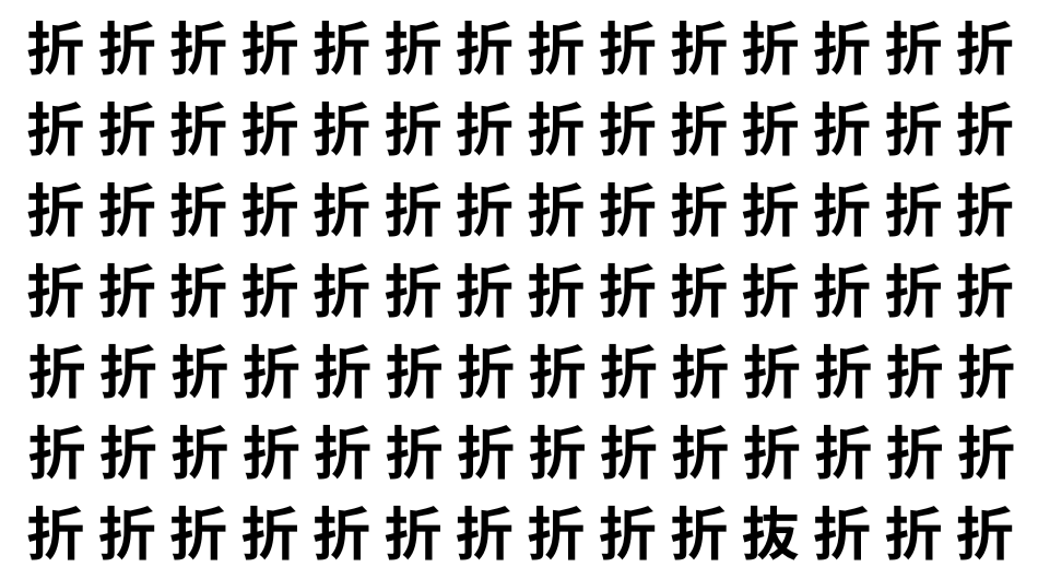 たくさんの「折」の中に、よく似た別の漢字が1文字だけ隠れています。