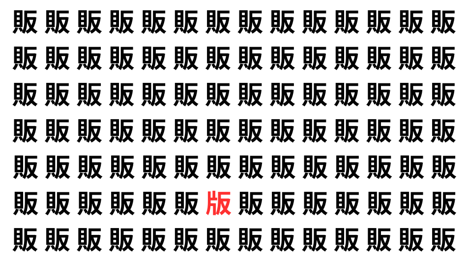 たくさんの「販」の中に、よく似た別の漢字が1文字だけ隠れています。