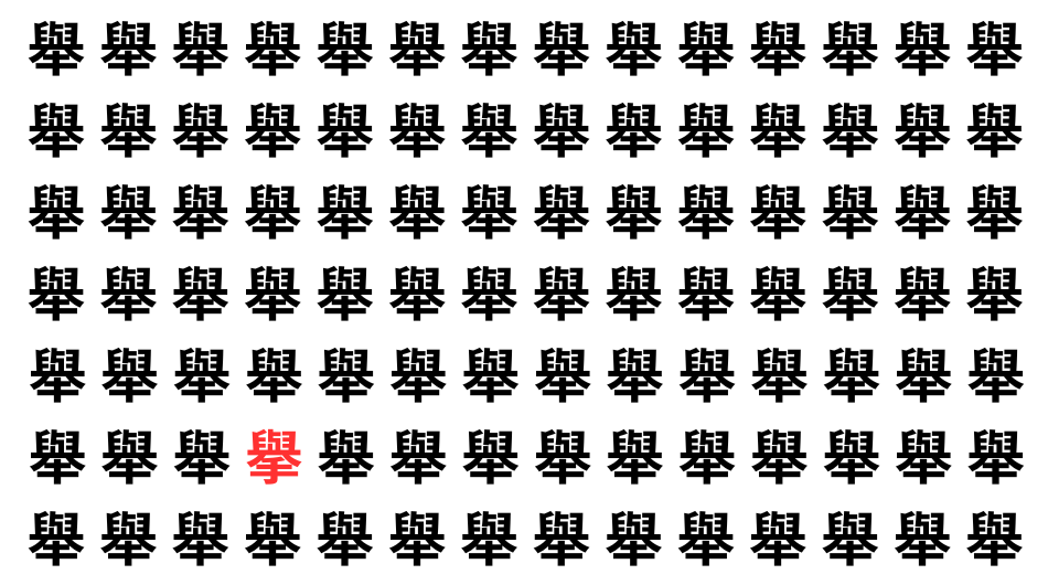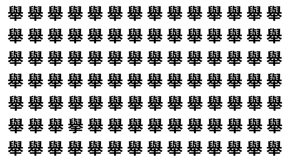 たくさんの「舉」の中に、よく似た別の漢字が1文字だけ隠れています。