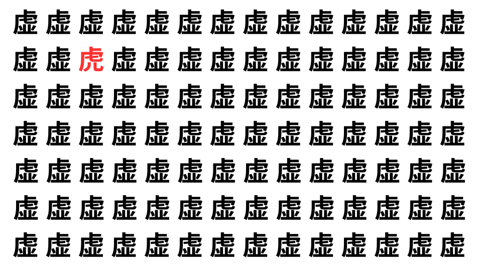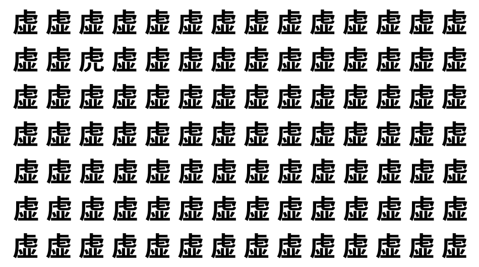 たくさんの「虚」の中に、よく似た別の漢字が1文字だけ隠れています。