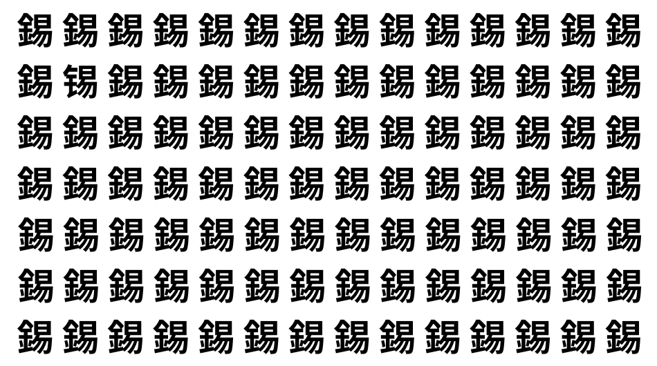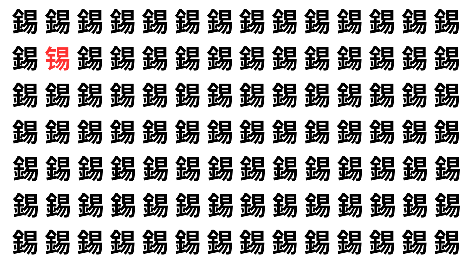 たくさんの「錫」の中に、よく似た別の漢字が1文字だけ隠れています。