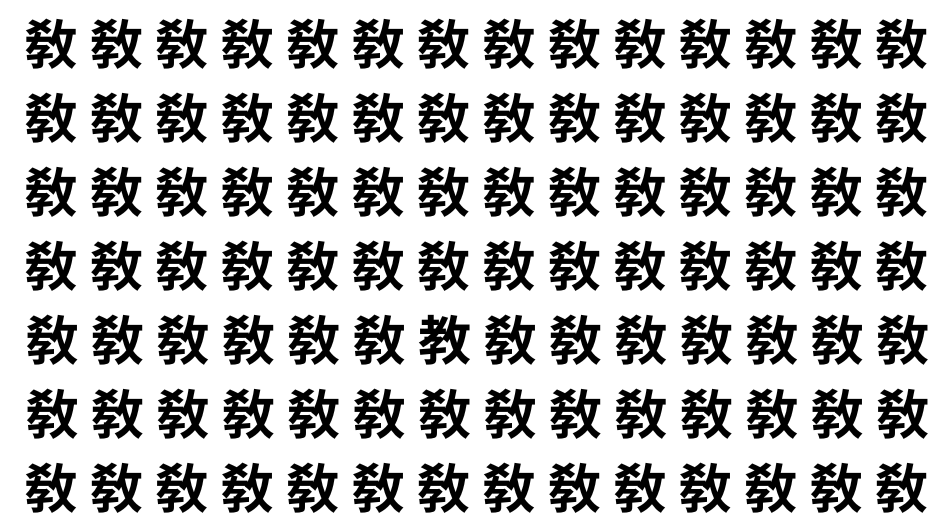 たくさんの「敎」の中に、よく似た別の漢字が1文字だけ隠れています。