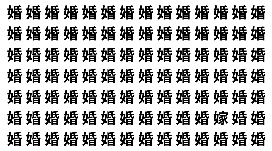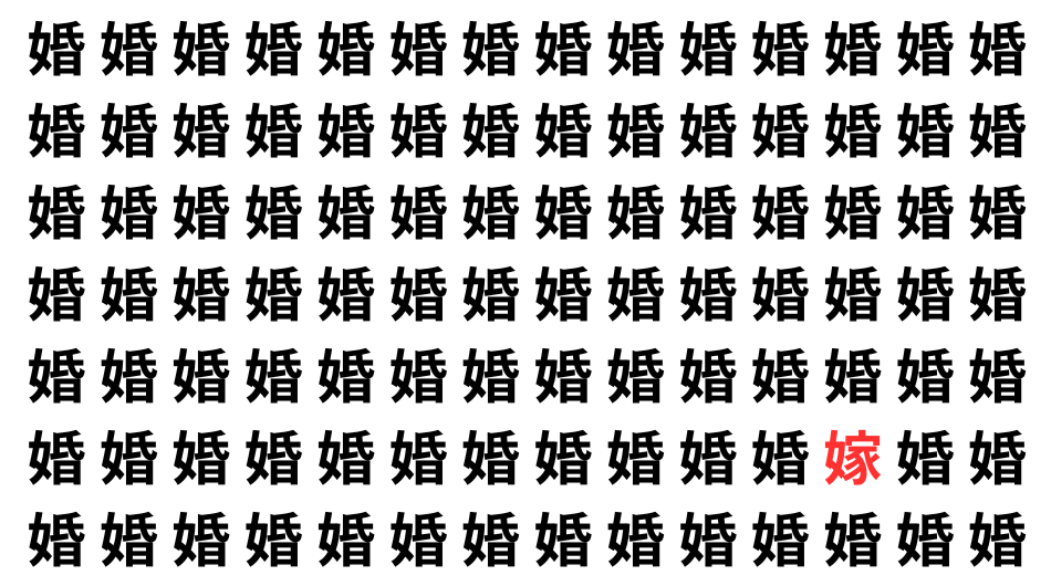 たくさんの「婚」の中に、よく似た別の漢字が1文字だけ隠れています。