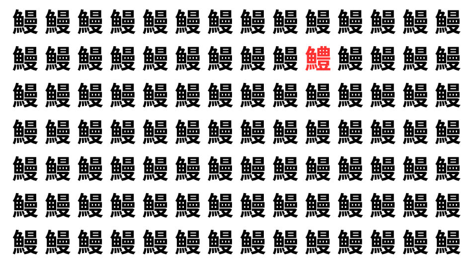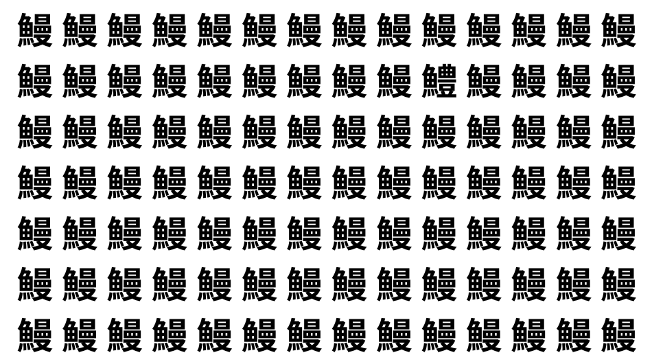 たくさんの「鰻」の中に、よく似た別の漢字が1文字だけ隠れています。