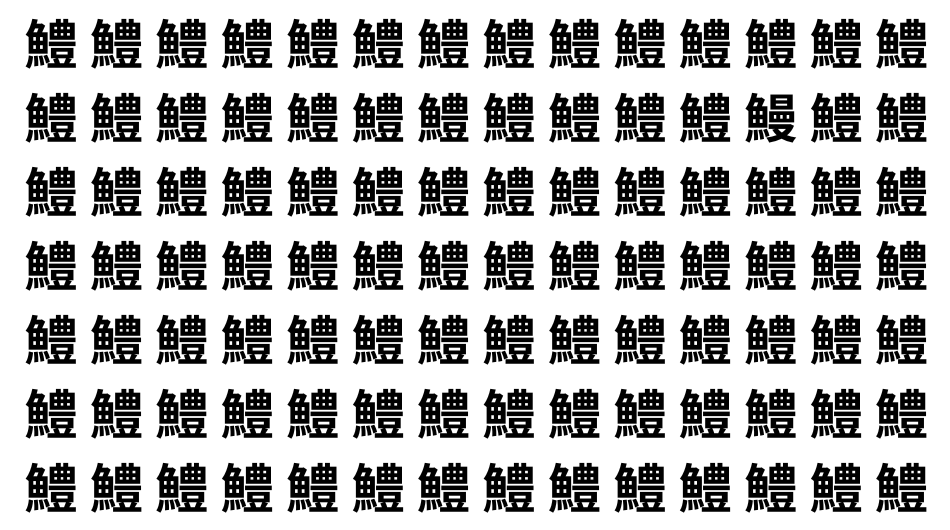 たくさんの「鱧」の中に、よく似た別の漢字が1文字だけ隠れています。