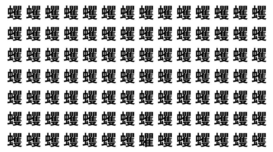 たくさんの「蠼」の中に、よく似た別の漢字が1文字だけ隠れています。