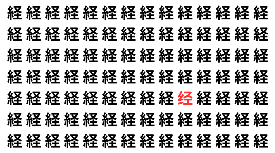たくさんの「経」の中に、よく似た別の漢字が1文字だけ隠れています。