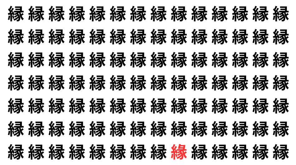 たくさんの「縁」の中に、よく似た別の漢字が1文字だけ隠れています。