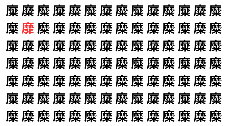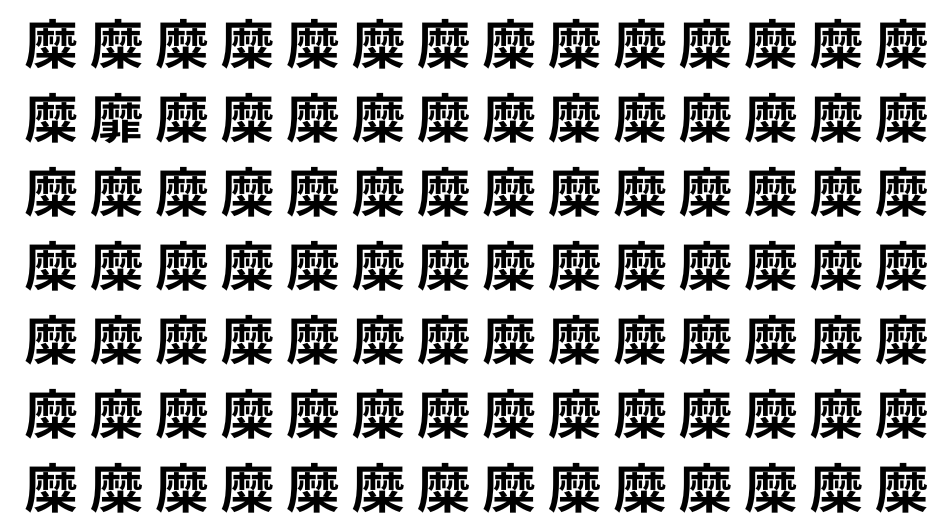 たくさんの「糜」の中に、よく似た別の漢字が1文字だけ隠れています。
