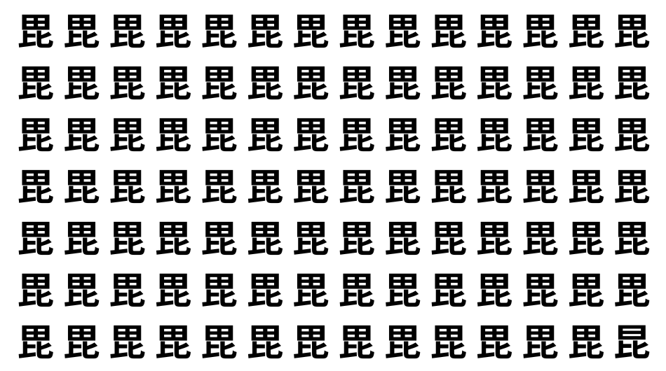 たくさんの「毘」の中に、よく似た別の漢字が1文字だけ隠れています。