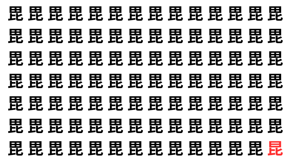 並んだ漢字の中に、ひとつだけ異なる文字が紛れています。集中して探し出し、気分をリフレッシュしましょう!