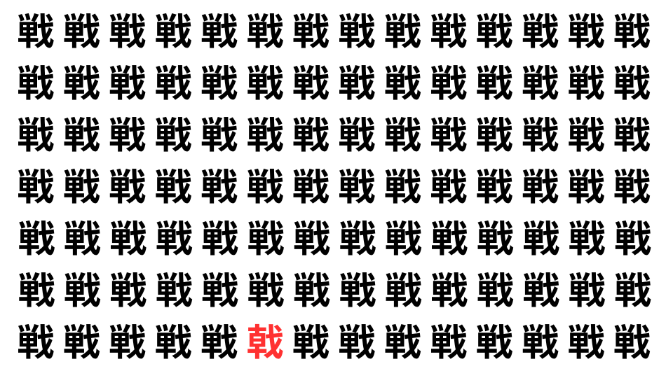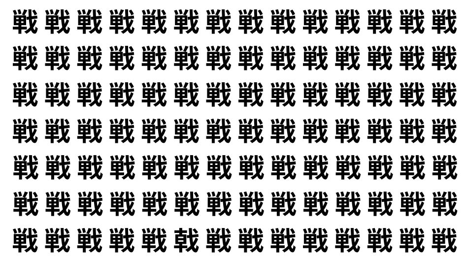 たくさんの「戦」の中に、よく似た別の漢字が1文字だけ隠れています。