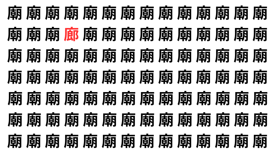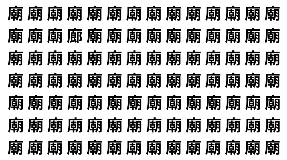 たくさんの「廟」の中に、よく似た別の漢字が1文字だけ隠れています。