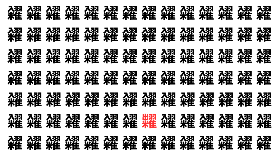 並んだ漢字の中に、ひとつだけ異なる文字が紛れています。集中して探し出し、気分をリフレッシュしましょう!