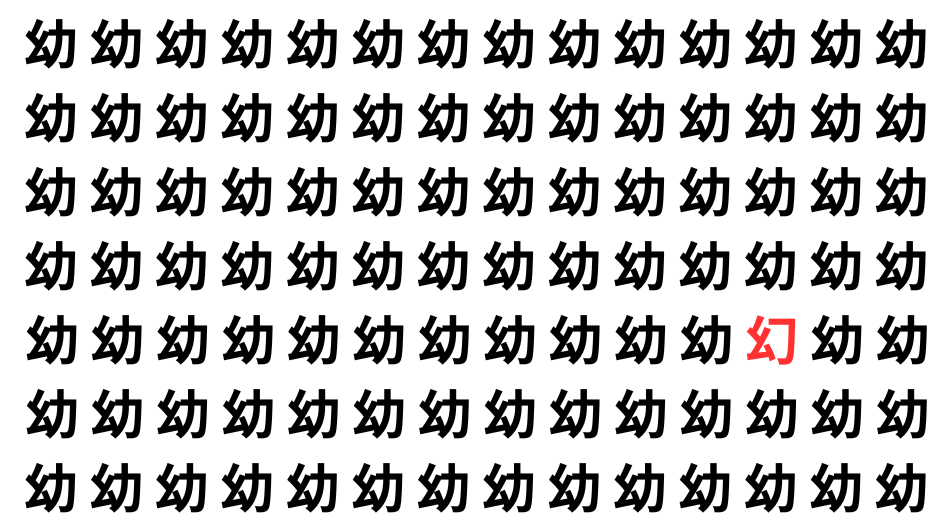 たくさんの「幼」の中に、よく似た別の漢字が1文字だけ隠れています。