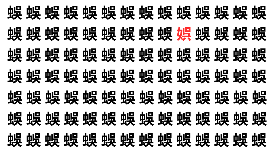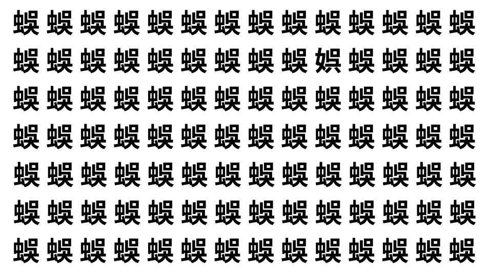 たくさんの「蜈」の中に、よく似た別の漢字が1文字だけ隠れています。