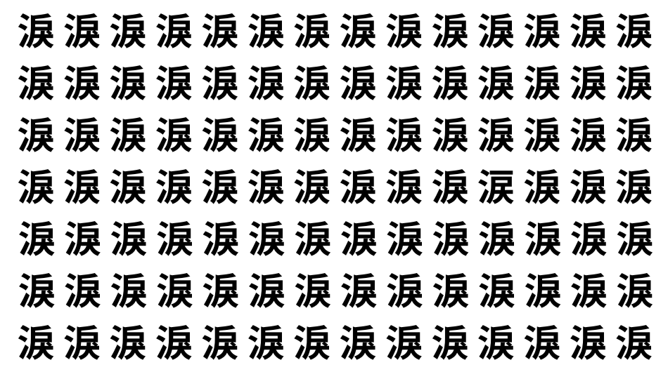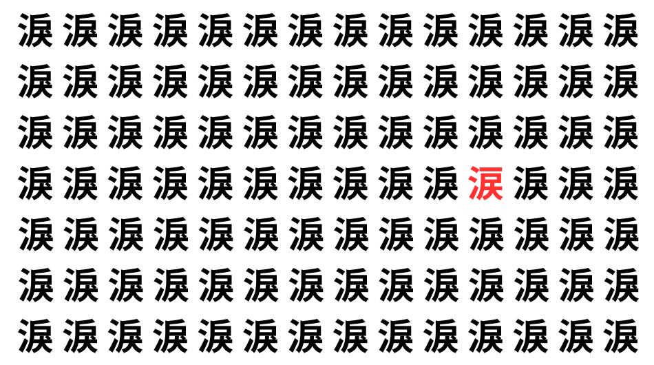 たくさんの「淚」の中に、よく似た別の漢字が1文字だけ隠れています。