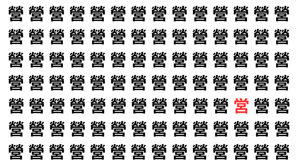 たくさんの「營」の中に、よく似た別の漢字が1文字だけ隠れています。