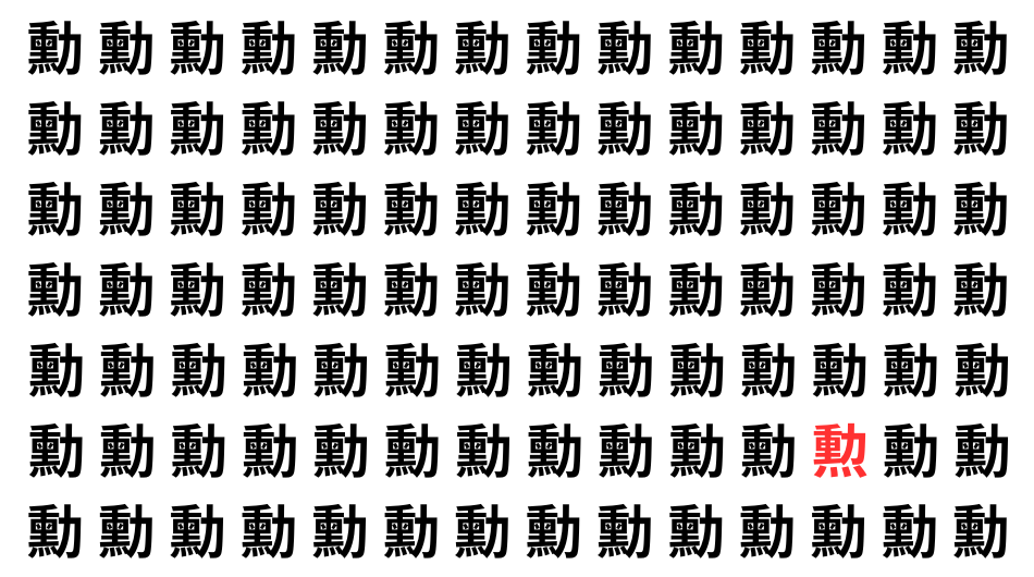並んだ漢字の中に、ひとつだけ異なる文字が紛れています。集中して探し出し、気分をリフレッシュしましょう!