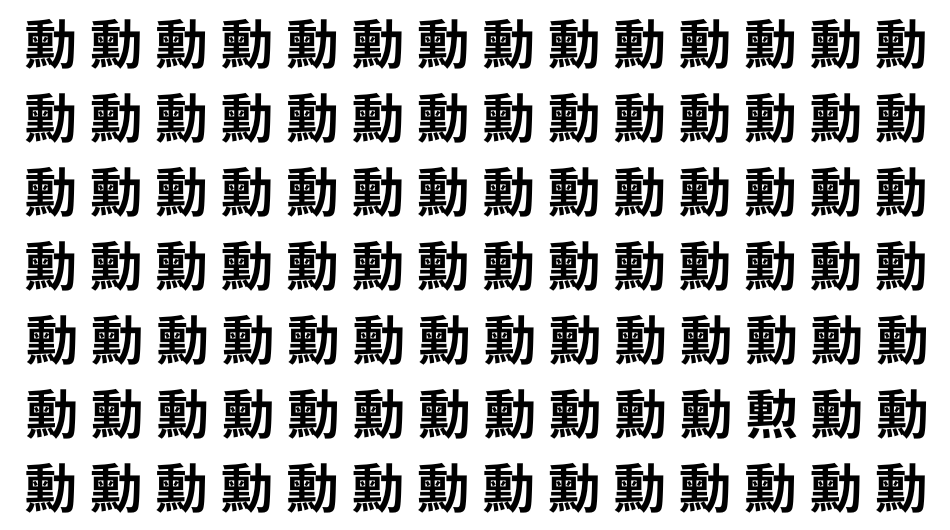 たくさんの「勳」の中に、よく似た別の漢字が1文字だけ隠れています。