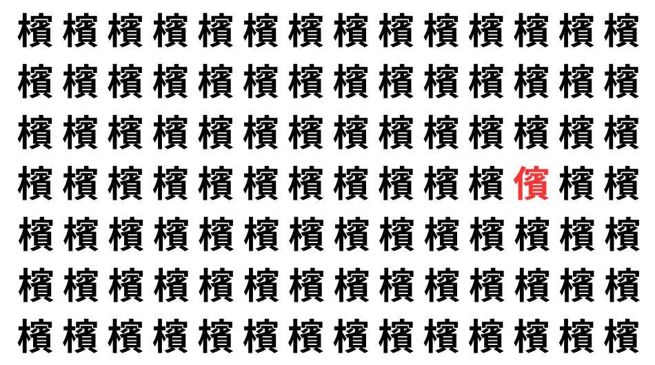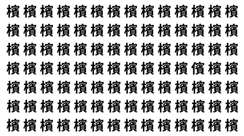 たくさんの「檳」の中に、よく似た別の漢字が1文字だけ隠れています。