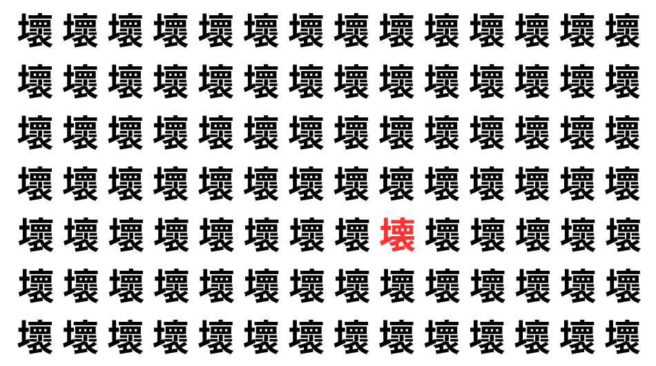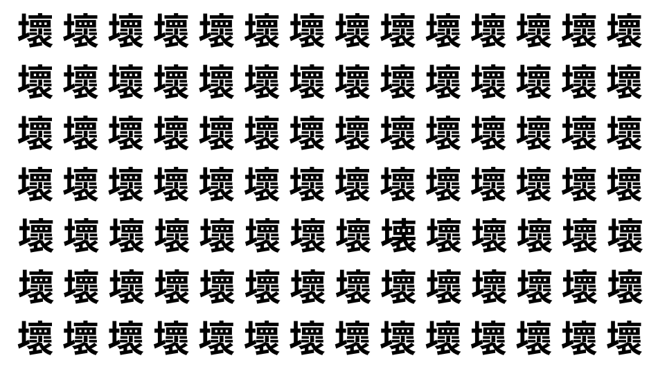 たくさんの「壞」の中に、よく似た別の漢字が1文字だけ隠れています。