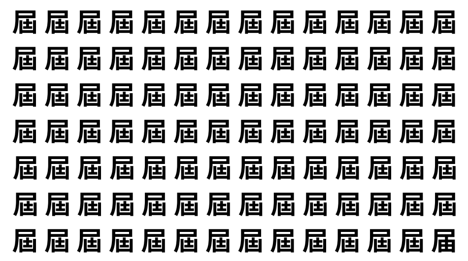 たくさんの「屆」の中に、よく似た別の漢字が1文字だけ隠れています。