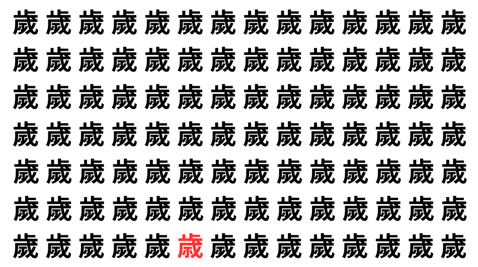 たくさんの「歲」の中に、よく似た別の漢字が1文字だけ隠れています。