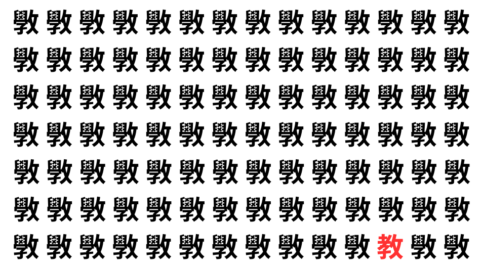たくさんの「斆」の中に、よく似た別の漢字が1文字だけ隠れています。